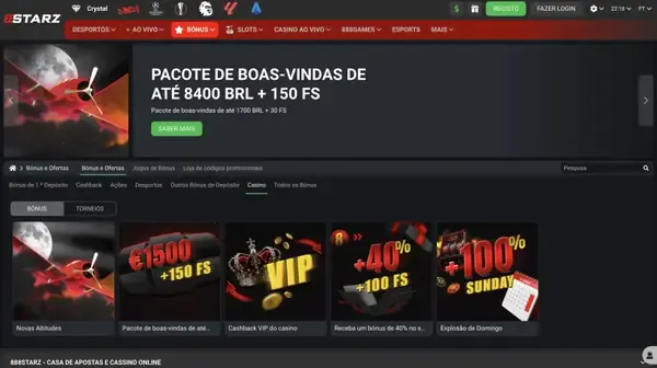 Executamos promoções estruturadas para casino e desporto, com termos apresentados na área de promoções antes de aderires. Novos jogadores podem reclamar um pacote de boas-vindas em várias etapas, e jogadores regulares podem usar ofertas de recarga e brindes sazonais. Algumas campanhas podem exigir um código promocional, que introduces no caixa antes de confirmares um depósito. Se alguma vez publicarmos um bónus sem depósito no 888starz casino, ele aparecerá com um limite de tempo claro e uma lista de jogos.