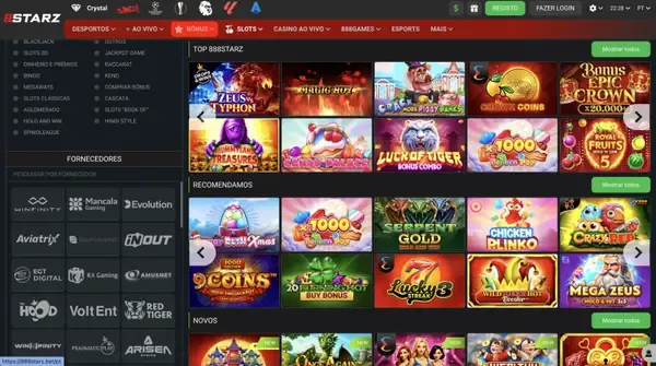 Para jogadores focados em slots, a nossa coleção de slots 888starz inclui lançamentos recentes e favoritos de longa data, enquanto as páginas de slots do casino 888starz facilitam entrar diretamente na categoria. Se quiseres uma experiência ao vivo, também podes passar do lobby principal para mesas ao vivo, incluindo roleta com dealer ao vivo com vários ângulos de câmara.